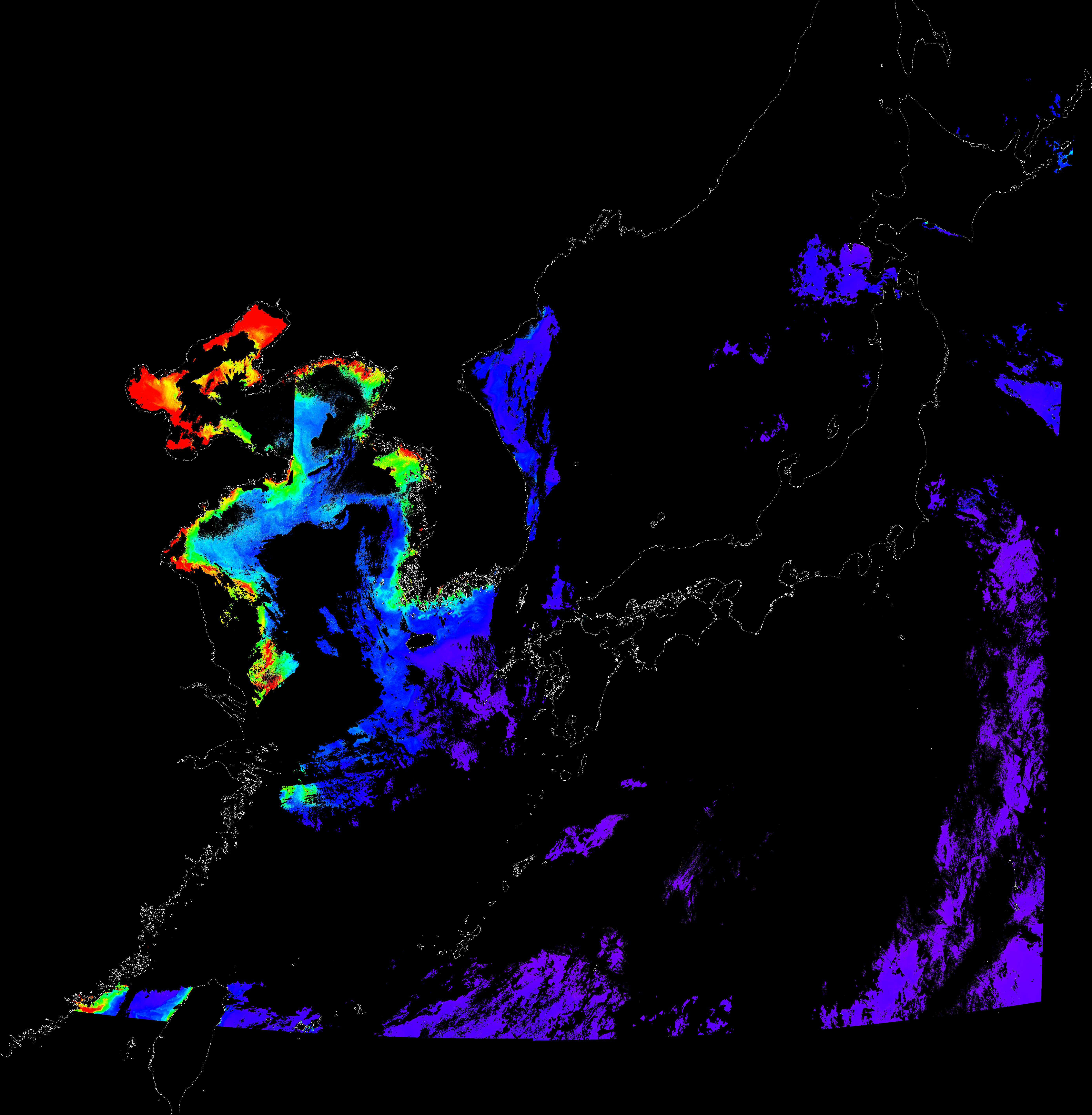 o 2018년 09월 04일 천리안 GOCI 클로로필 a 위성영상입니다. [ GOCI : Geostationary Ocean Color Imager ] o 농도분포는 하단 범례를 참고하시기 바랍니다. o 검은색은 구름을 나타냅니다.