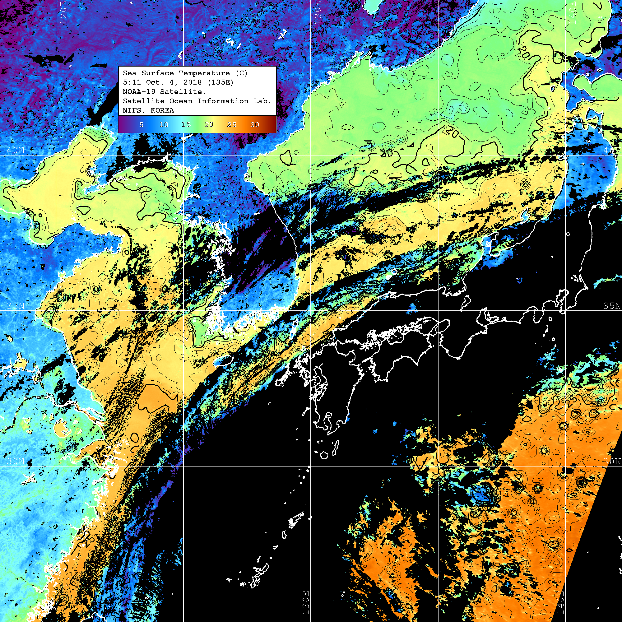 o 영상 시간 및 수온분포는 범례를 참고하시기 바랍니다.