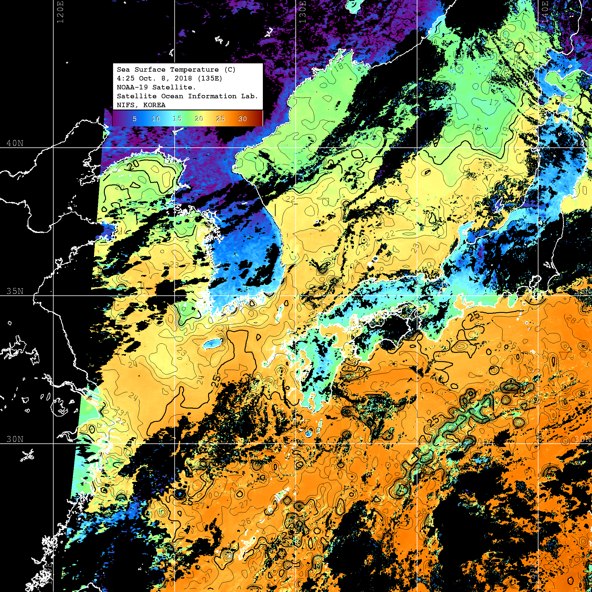 o 영상 시간 및 수온분포는 범례를 참고하시기 바랍니다.