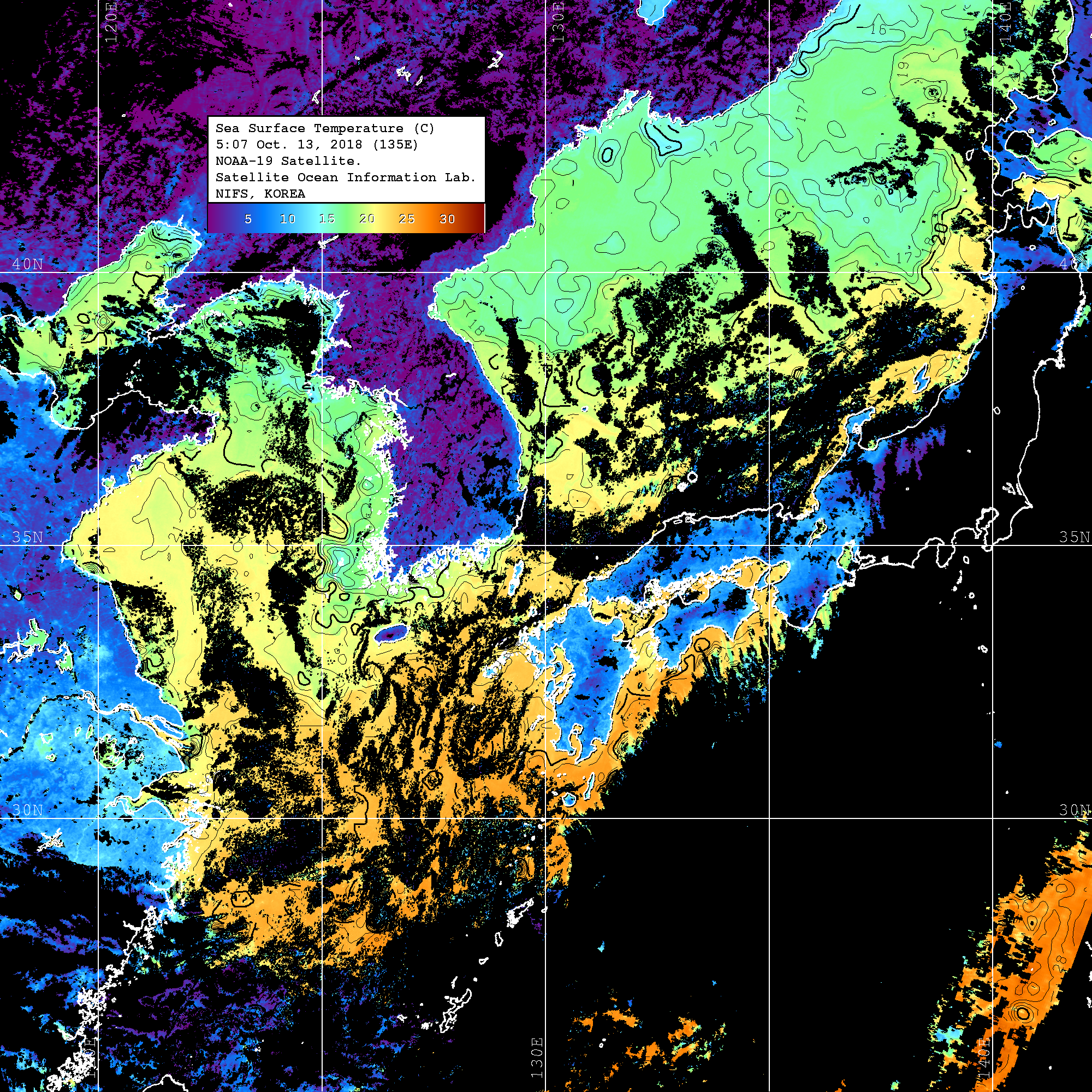 o 영상 시간 및 수온분포는 범례를 참고하시기 바랍니다.