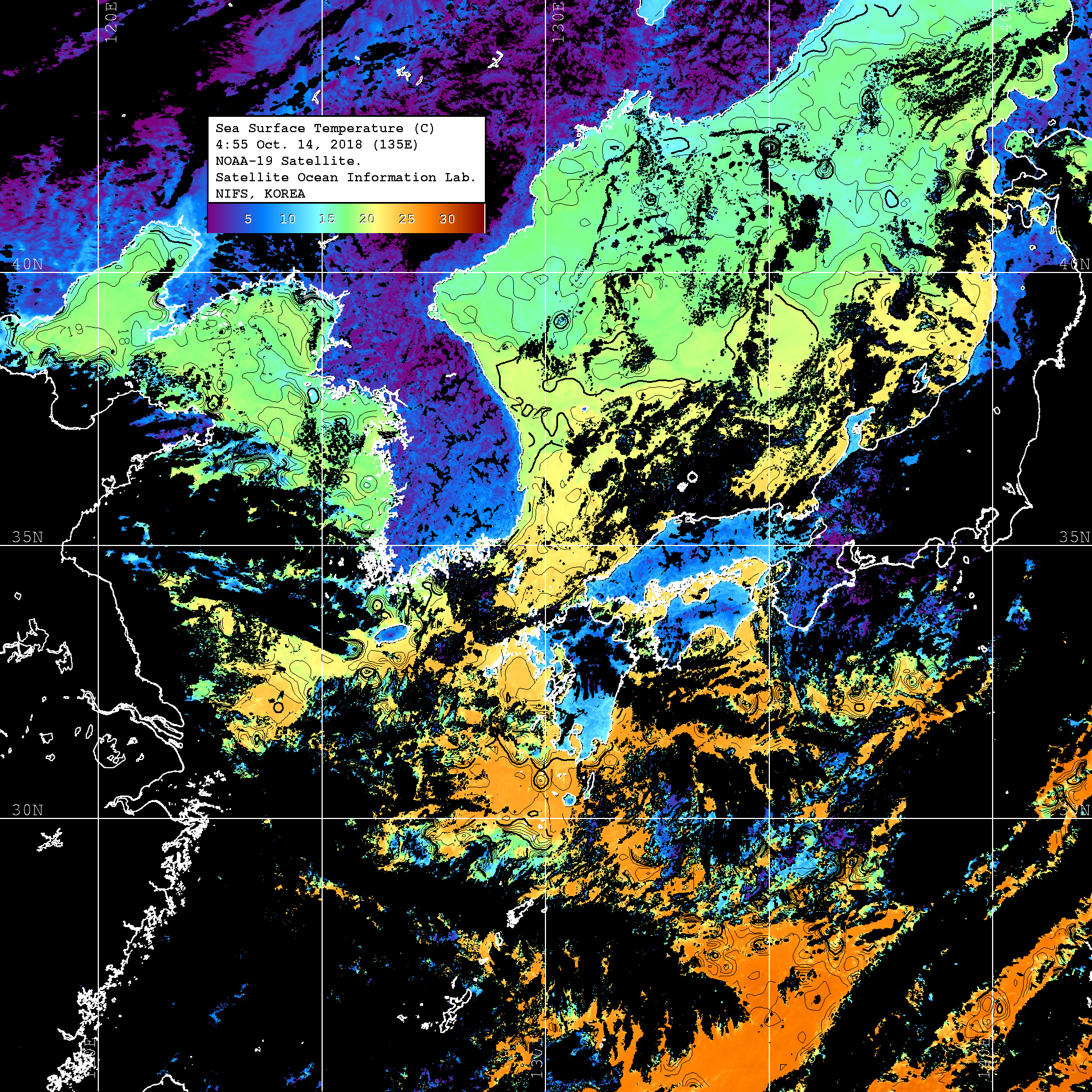 o 영상 시간 및 수온분포는 범례를 참고하시기 바랍니다.