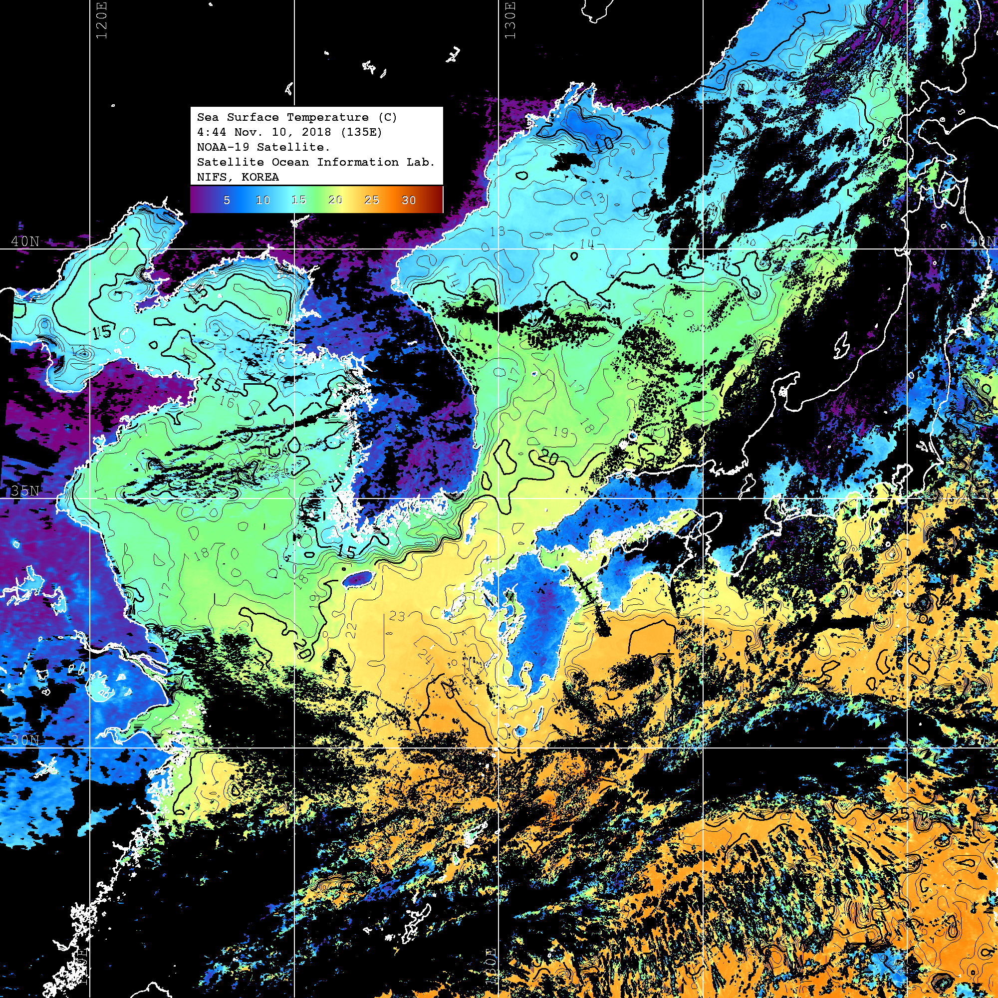 o 영상 시간 및 수온분포는 범례를 참고하시기 바랍니다.