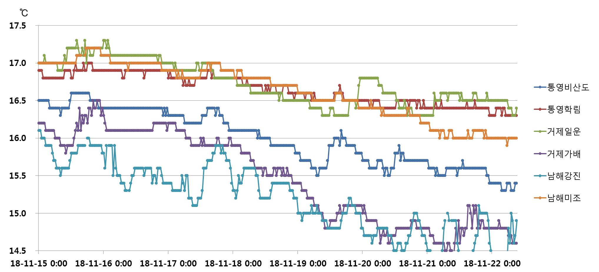 | 남해(통영, 거제, 남해)연안 수온정보(해양자료속보, 제5426호) | |||||
