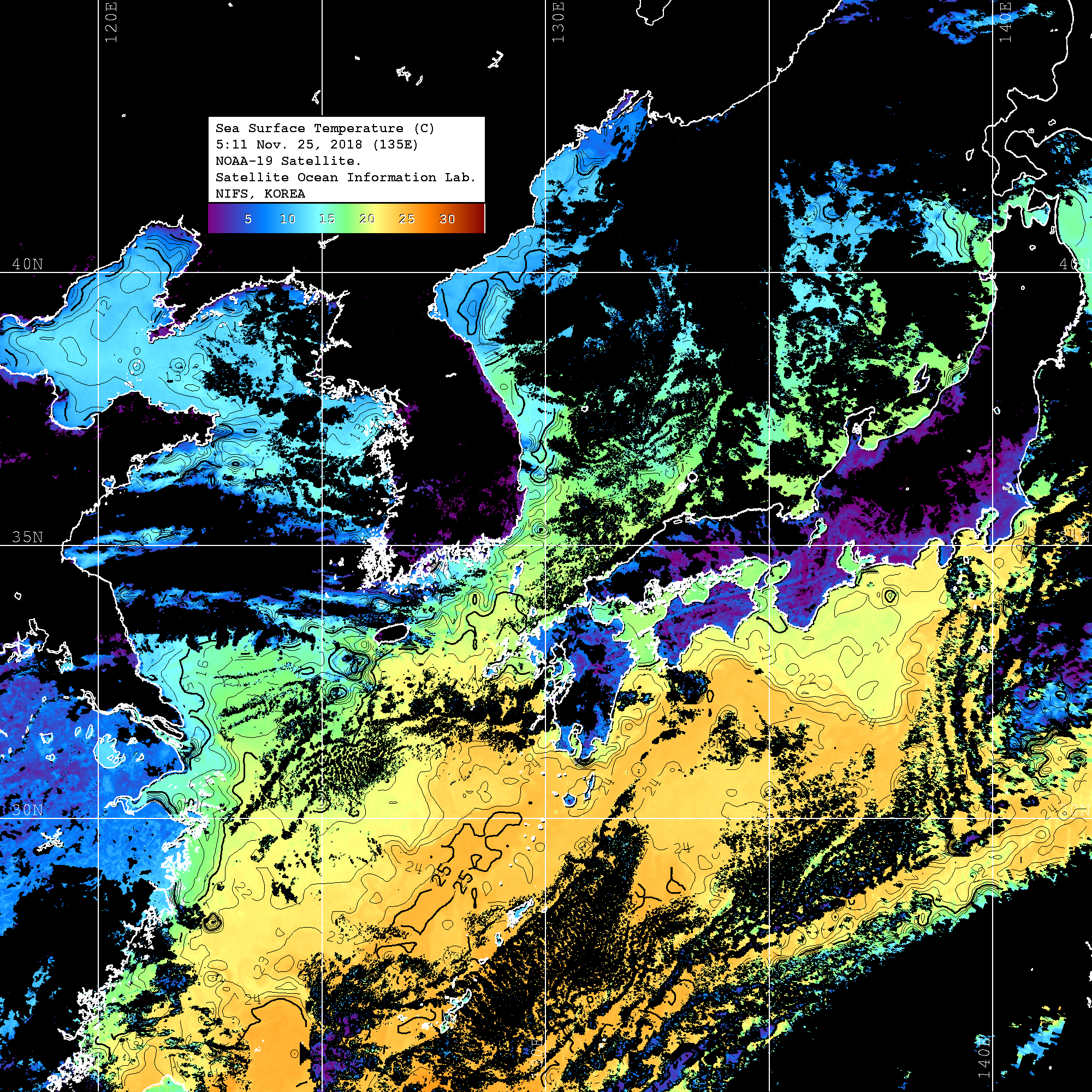 o 영상 시간 및 수온분포는 범례를 참고하시기 바랍니다.