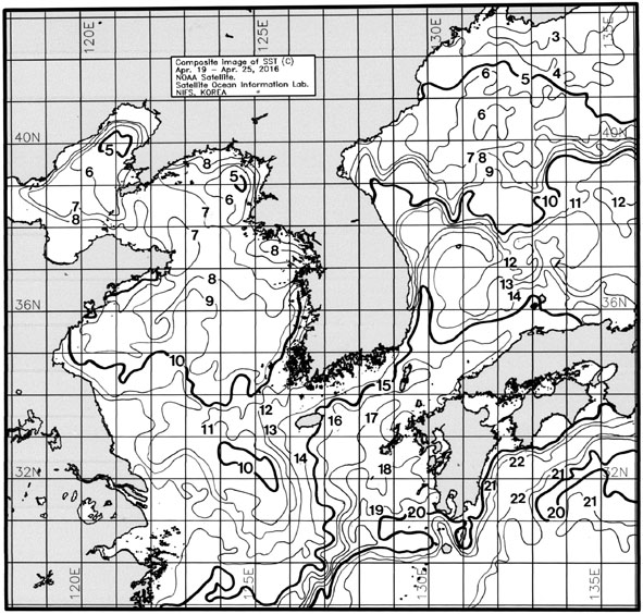 광역 위성영상 합성 표면수온 분포도 (2016. 04. 19 ~ 2016. 04. 25)