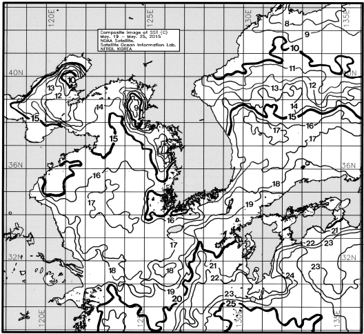 광역 위성영상 합성 표면수온 분포도 (2015. 05. 19 ~ 2015. 05. 25)