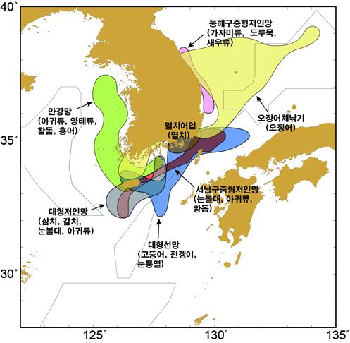 ○ 근해안강망어업 5월의 근해안강망어업은 서해중남부~제주도 북서부해역에 걸쳐 아귀류(26%), 양태류(17%), 참돔(15%), 홍어(5%) 등을 대상으로 어장이 형성되었으며, 전체적인 어황은 평년비 다소 부진하였다. 6월에 들면 근해안강망어업은 황해연안냉수와 황해 난류 사이에 형성되는 수온전선대를 따라 서해남부해역의 가거도~추자도에서 아귀류, 양태류, 참조기 등의 분포 밀도가 높아질 것으로 전망된다. 하순으로 접어들면서 연근해의 수온 상승과 함께 중심어장이 점차 북쪽으로 확장될 것으로 예상되며, 전체적인 어황은 어군의 내유량 증가로 평년수준을 나타낼 것으로 전망된다. ○ 저인망어업 5월의 대형저인망어업은 쌍끌이어업이 제주도 서부해역과 동부해역을 중심으로 삼치, 갈치, 매퉁이, 반지, 병어 등을 어획하였으며, 외끌이대형저인망어업도 제주도 남부해역에서 대마난류의 흐름을 따라 눈볼대, 아귀류, 황돔, 참돔 등을 대상으로 어장이 형성되었다. 서남구중형저인망어업은 동해남부해역에서 눈볼대, 아귀류, 황돔, 살오징어 등을 대상으로 어획하였다. 저인망어업의 전체적인 어황은 평년수준을 나타내었다. 동해구외끌이중형저인망어업은 휴어기로 인해 조업이 이루어지지 않았다. 6월에 들면 쌍끌이대형저인망어업은 5월 중순~8월 중순까지 실시하는 자율휴어기로 인해 조업이 이루어지지 않을 전망이다. 외끌이대형저인망어업은 제주도 남부해역~동부해역에 걸쳐 눈볼대, 아귀류, 가시발새우 등을 대상으로 어장이 형성되겠다. 서남구중형저인망어업은 눈볼대, 가자미류, 아귀류 등을 대상으로 동해남부해역에서 조업이 이루어질 전망이다. 한편 동해구외끌이중형저인망어업은 동해안 연안을 따라 가자미류, 도루묵, 새우류, 대구 등을 대상으로 조업이 이루어질 전망이다. 저인망어업의 전체적인 어황은 자율휴어기 등의 실시로 평년비 다소 부진할 것으로 예상된다. ○ 오징어채낚기어업 5월의 오징어채낚기어업은 동해 중남부해역 및 남해동부해역에서 어장이 형성되었으나, 봄철 한어기에 접어들어 어획량은 많지 않았으며, 전체적인 어황은 평년비 부진하였다. 6월에 들면 지난 가을, 겨울철에 발생한 오징어를 대상으로 여름철 어기가 시작될 것으로 예상된다. 중순이후에는 개체의 성장과 함께 어군의 내유량이 증가하여 동해 전해역으로 어장이 확장될 것으로 전망된다. 전체적인 어황은 여름철 어기가 시작되는 시기이기 때문에 어군 밀도가 높지 않아 평년수준을 유지할 것으로 예상된다. ※ 일본 EEZ수역 어황전망 일본 EEZ수역인 대마도 동북부 및 서남부해역에서도 대마난류를 따라 북상하는 어군을 대상으로 부분적인 어장이 형성될 것으로 전망되나, 전체적인 어황은 어군의 분포밀도는 높지 않을 것으로 예상된다. |