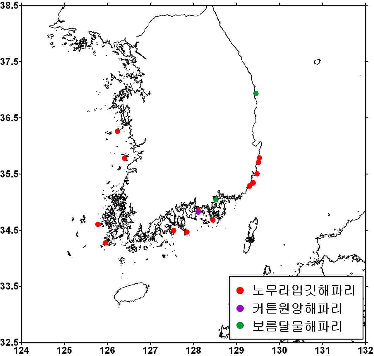 <주요상황> ☞ 노무라입깃해파리 : 동?서?남해 소량출현. ☞ 커튼원양해파리 : 남해 일부해역 소량출현. ☞ 보름달물해파리 : 동?남해 일부해역 소량출현.