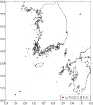 붙임 3. 주요 해파리 분포 주간변동 노무라입깃해파리 보름달물해파리 기타해파리