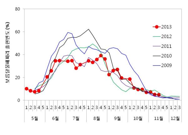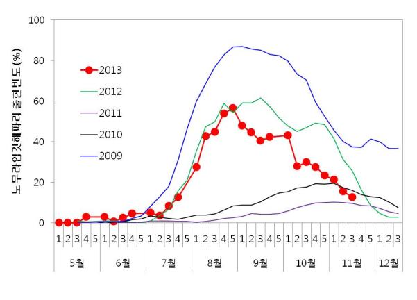 붙임 1. 각 지역별 해파리 출현률(%)