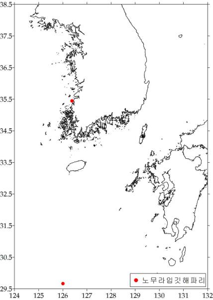 붙임 3. 주요 해파리 분포 주간변동 노무라입깃해파리 보름달물해파리 기타해파리