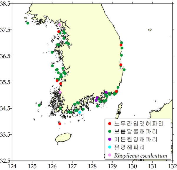 < 주요 상황> ☞ 노무라입깃해파리 : 동․서․남해/제주도 일부해역 소량 출현. ☞ 보름달물해파리 : 동․서․남해 일부해역 출현, 전북/전남/경남/부산 일부해역 밀집출현. ☞ 커튼원양해파리 : 남해 일부해역 소량 출현. ☞ 유령해파리 : 남해 일부해역 출현. ☞ Rhopilema esculentum : 서해 일부해역 소량 출현.