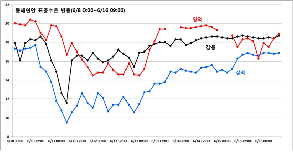 | 삼척 연안 냉수대 주의보 해제(해양자료속보, 제4896호) | |||||