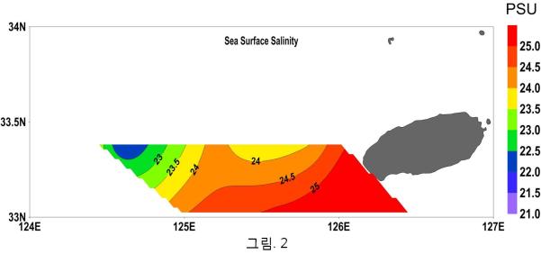 | 제주 서방해역 저염분 분포정보(해양자료속보, 제4943호) | |||||