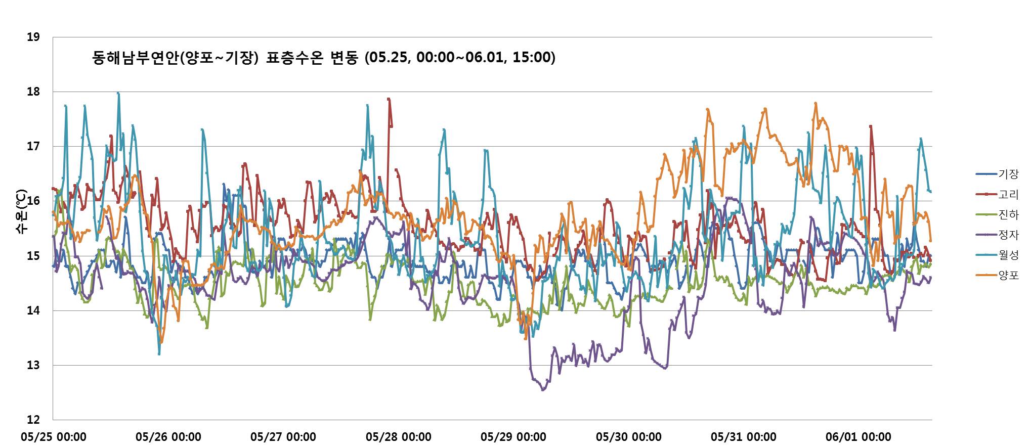 | 동해 남부 연안(양포~기장) 냉수대 주의 수온 정보(해양자료속보, 제5092호) | |||||||