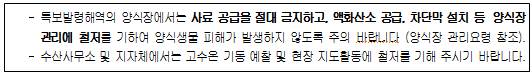 부산~울산 연안에서는 양식장 사육 관리 및 수온 예찰에 철저를 기하여 주시기 바랍니다.
