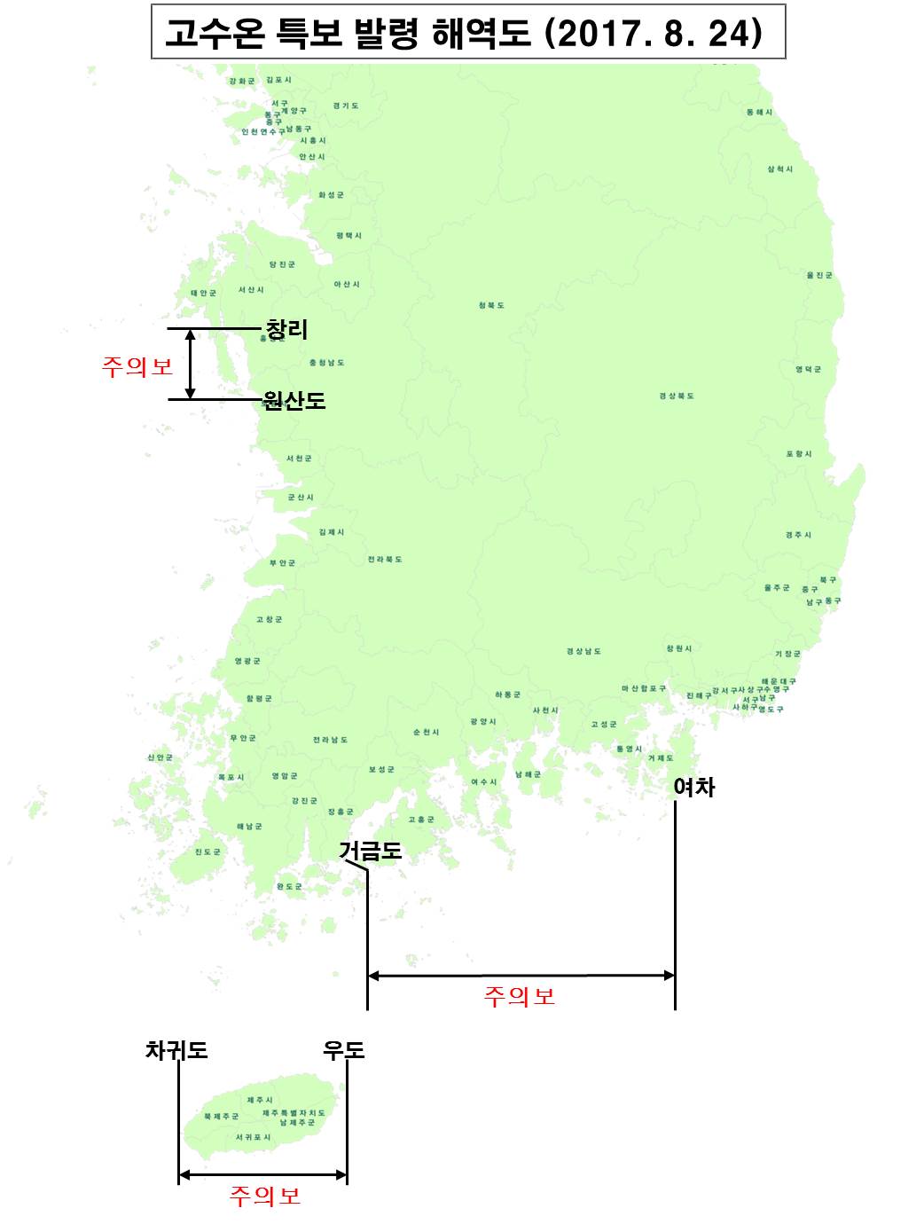※ 동해남부(기장∼진하) 해역 냉수대 주의보 발령(2017. 8. 23, 해양자료속보 5153호 참조)