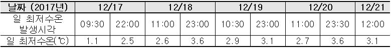 - 저수온 주의보 발령 (2017. 12. 14, 11:00)