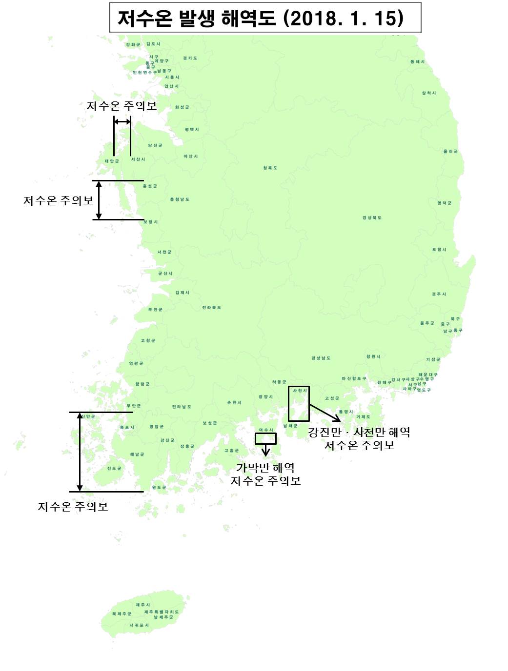 - 저수온 주의보 발령 해역 :