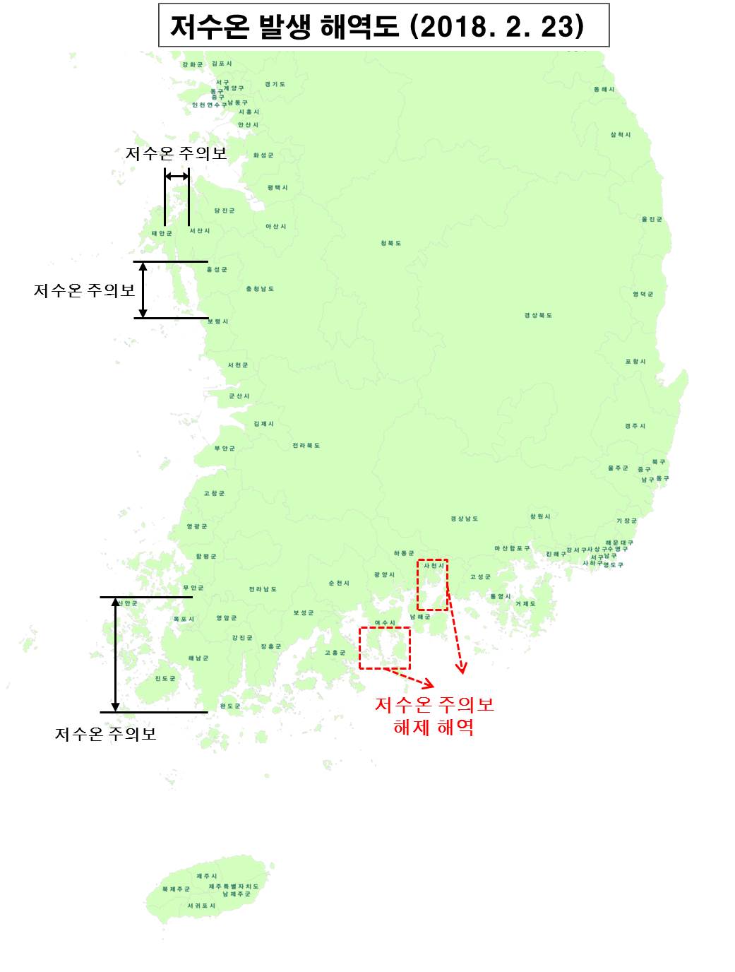 - 저수온 주의보 해제 해역 (2018. 2. 23, 14:00부) :