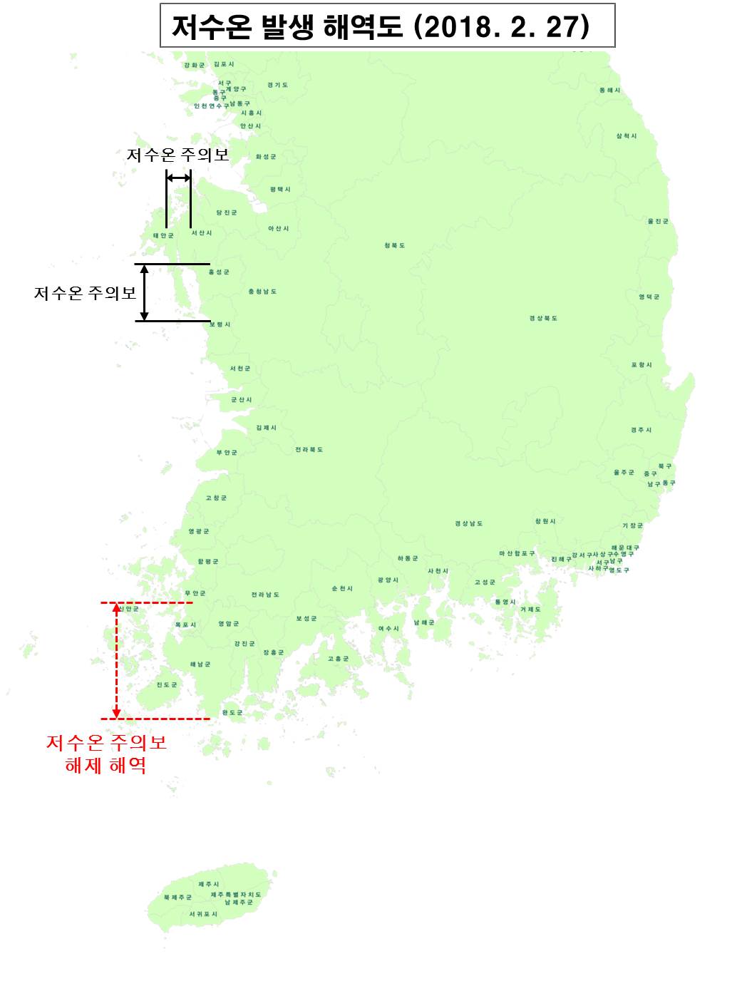 - 저수온 주의보 해제 해역 (2018. 2. 27, 14:00부) :