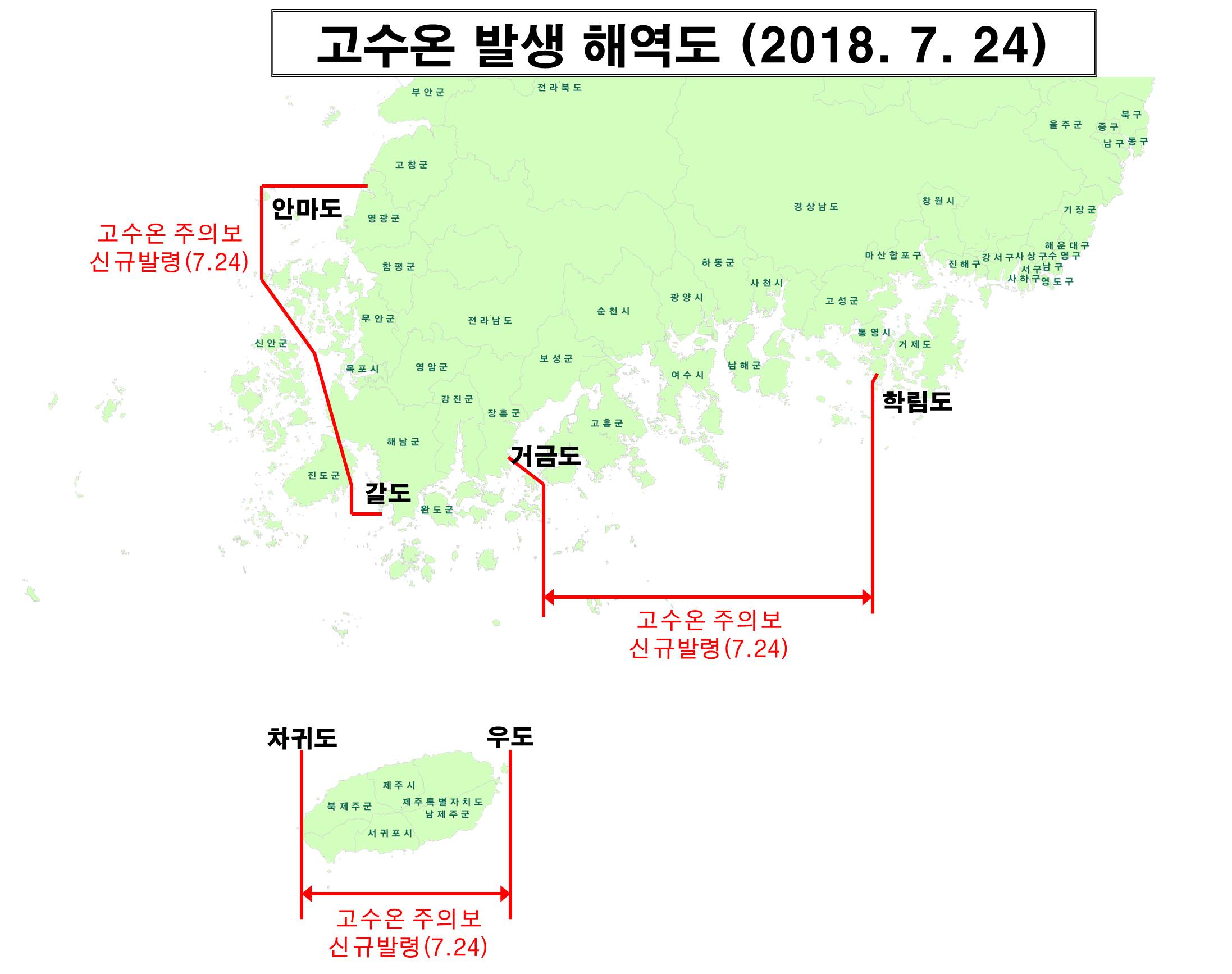 - 고수온 주의보 발령 (2018. 7. 24, 10:00)