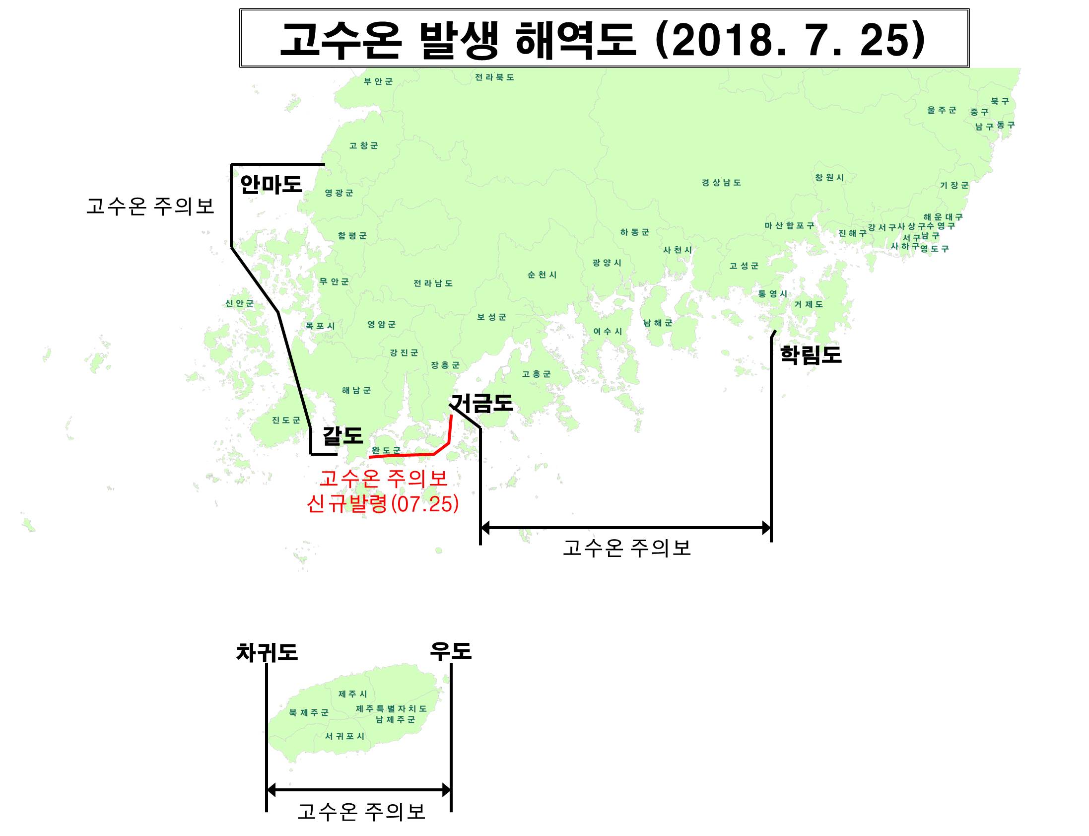- 고수온 주의보 신규 발령 (2018. 7. 25, 16:00)