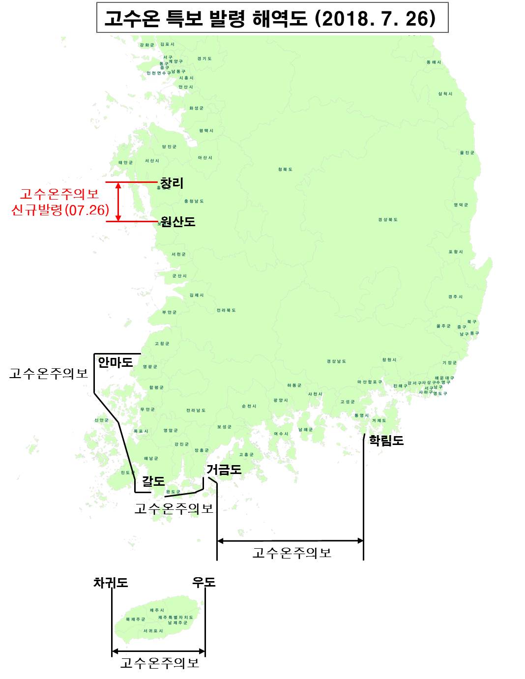 - 고수온 주의보 신규 발령 (2018. 7. 26, 14:00)