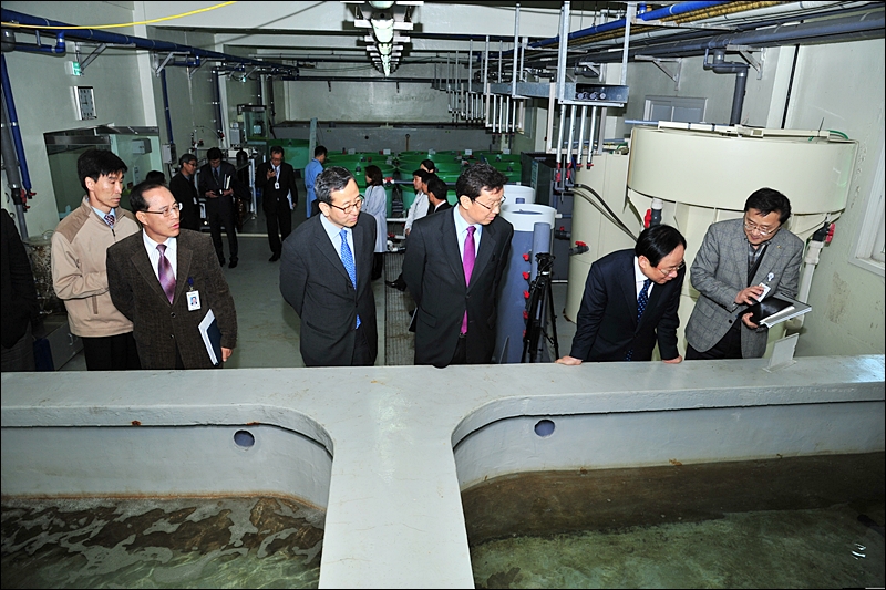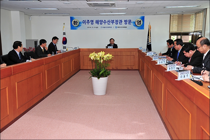The Minister of Oceans and Fisheries, Lee, Ju-young visited the NFRDI on 21 March 2014. The NFRDI had a work briefing for him,and he asked the NFRDI to work extra hard for the development of advanced fisheries technology.