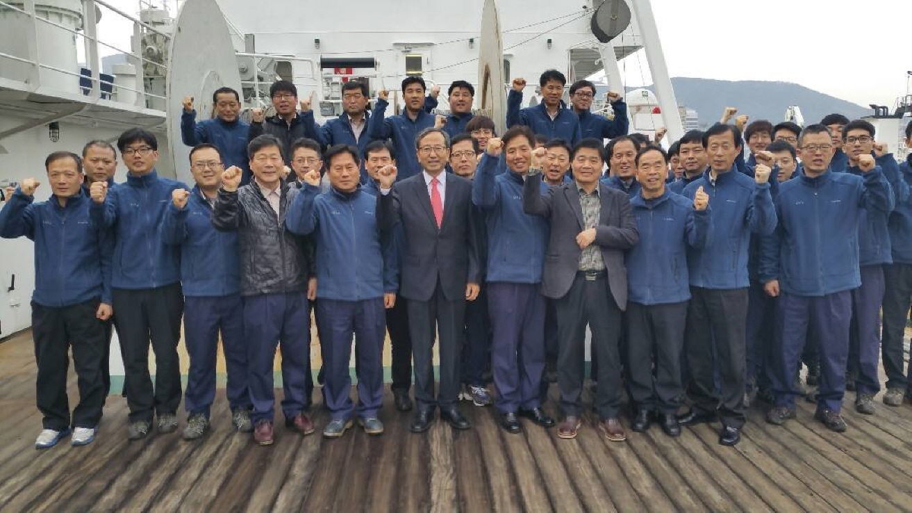 The president of NIFS, Mr. Kang, met crews of research vessels and expressed words of encouragement for their long and tough life on vessels.
