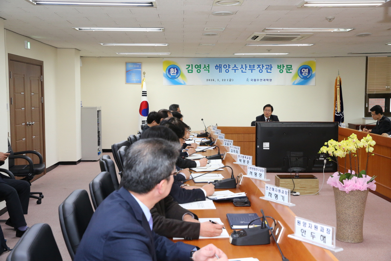 The Minister of Oceans and Fisheries visited NIFS on January 22, 2016. He received a briefing on the works being done at NIFS and emphasized the role of NIFS, as a global leader, to grow fisheries as a future industry.