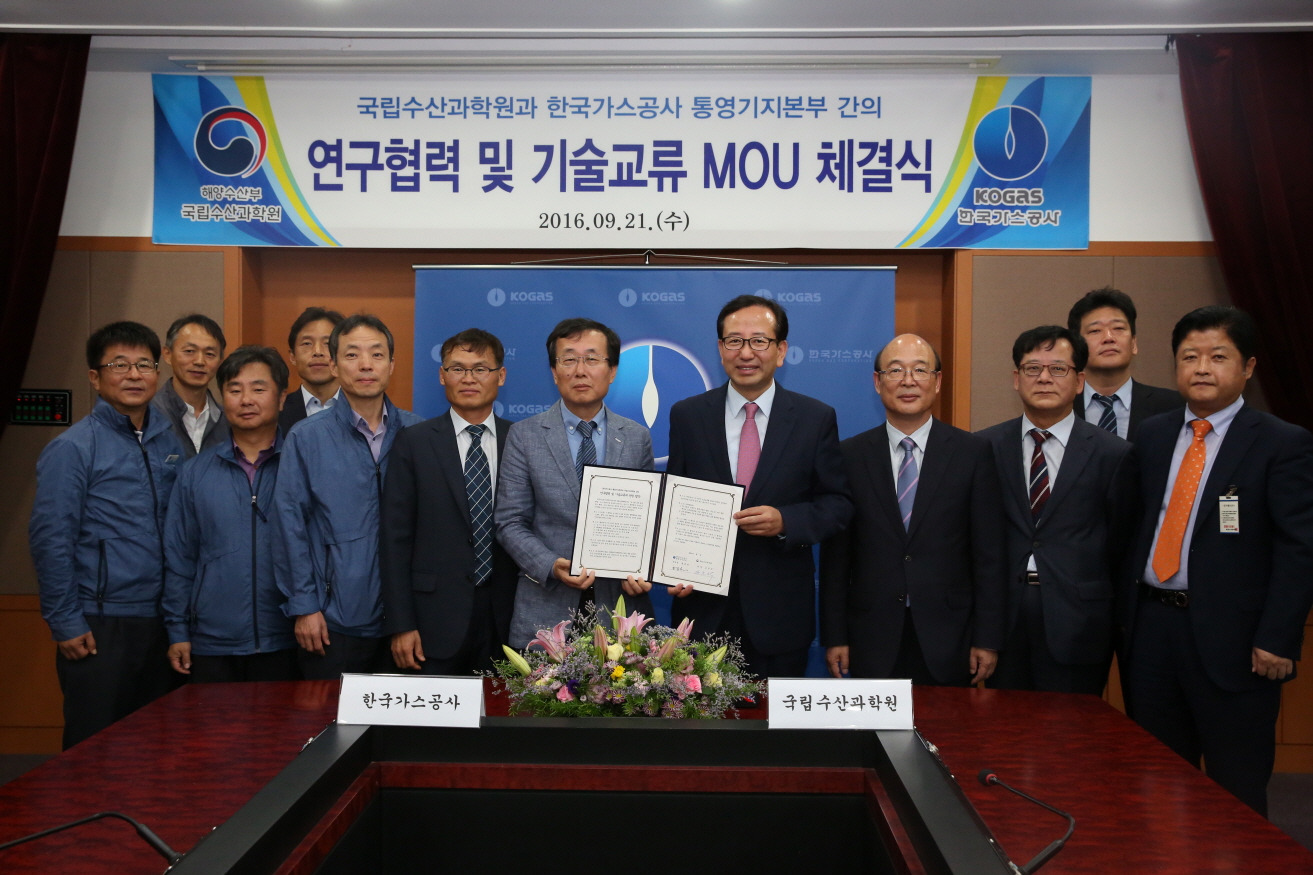 NIFS concluded aMOU with Tongyeong branch of the Korea Gas Corporation (KOGAS) on September 21and agreed to cooperate by connecting multiple ocean infrastructures of KOGASand scientists and ocean and fisheries science technology of NIFS.