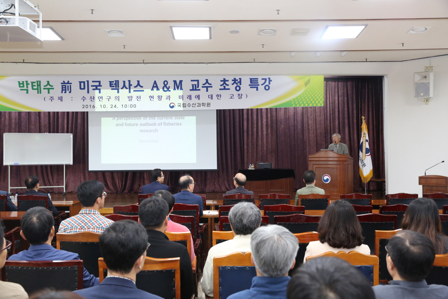 NIFS invisted a celebrity on October 24, and he made a presentation about the "Progress and Future of Fisheries Studies."