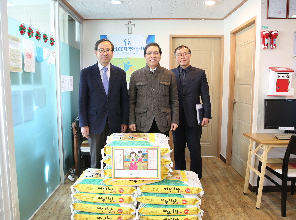 Celebrating the Lunar New Year\'s Day (seollal), president of NIFS visited the ShinJeong LCC child care center on February 2, 2016 and presented gifts to the children.