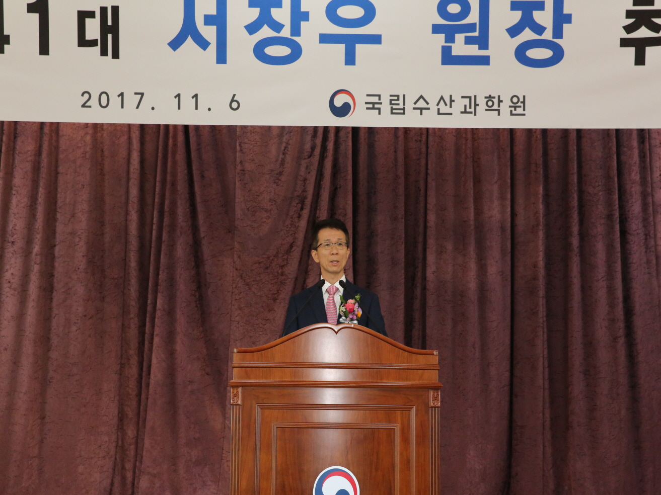 An inauguration ceremony of the 41st president of NIFS was held on November 6, with the participation of all NIFS members. New president Seo Jang-Woo is delivering his inauguration speech.