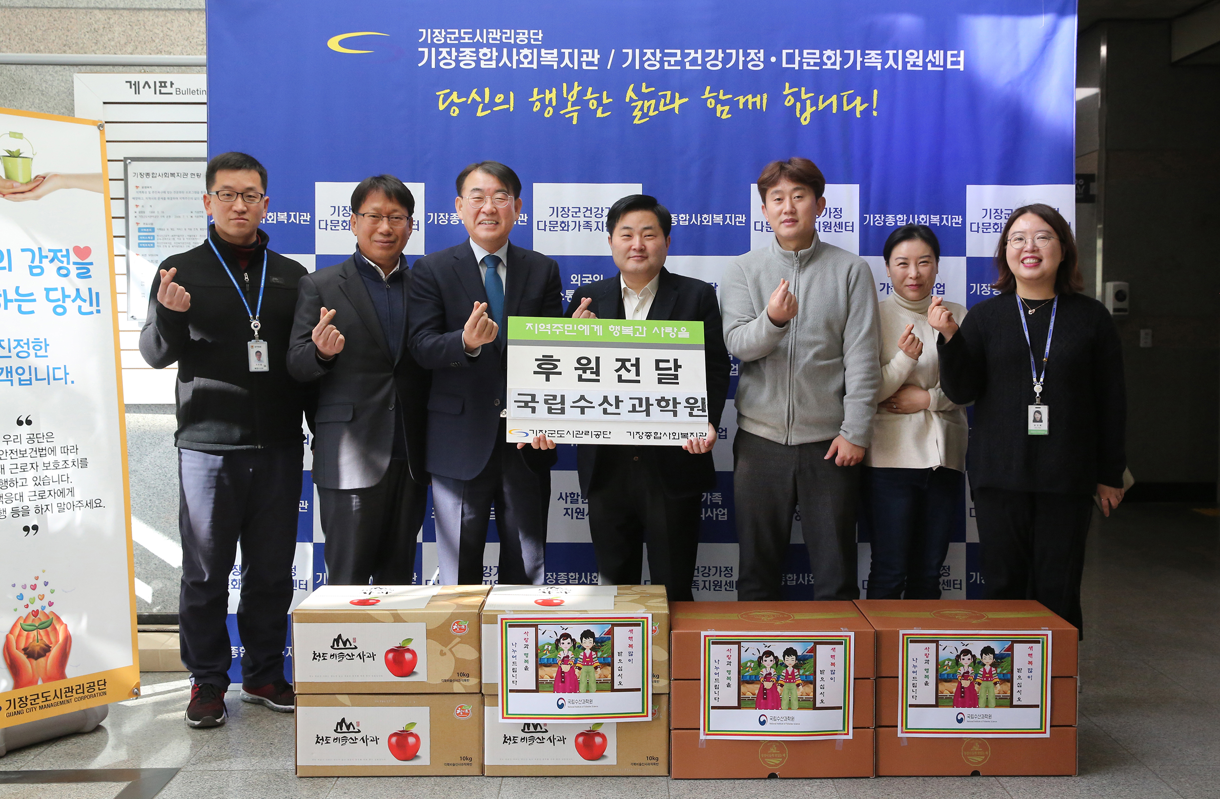 Celebrating Lunar New Year\'s Day (seollal), President of NIFS visited Gijang Social Welfare Center on January 21st to present gift to isolated neighbors.