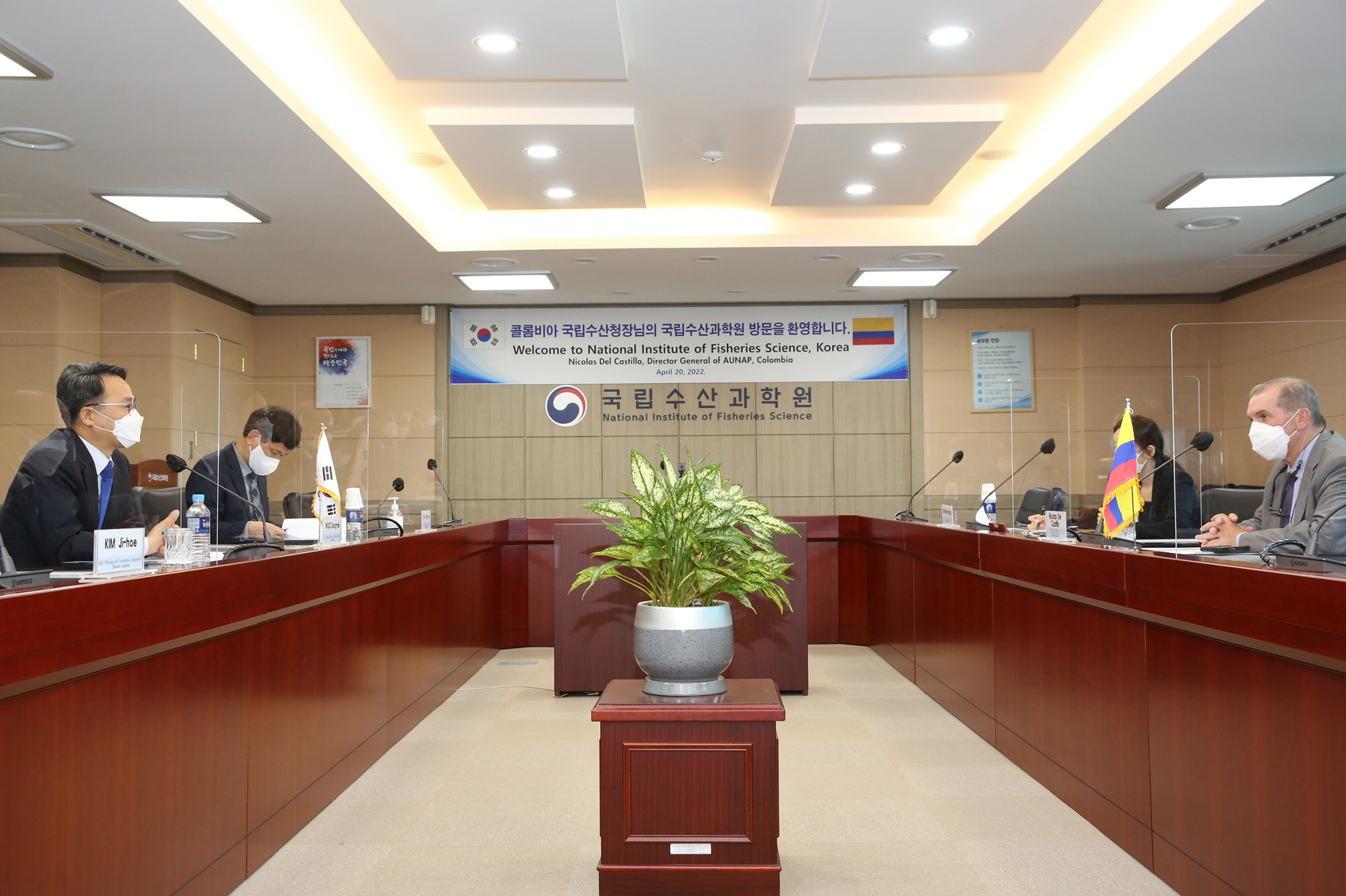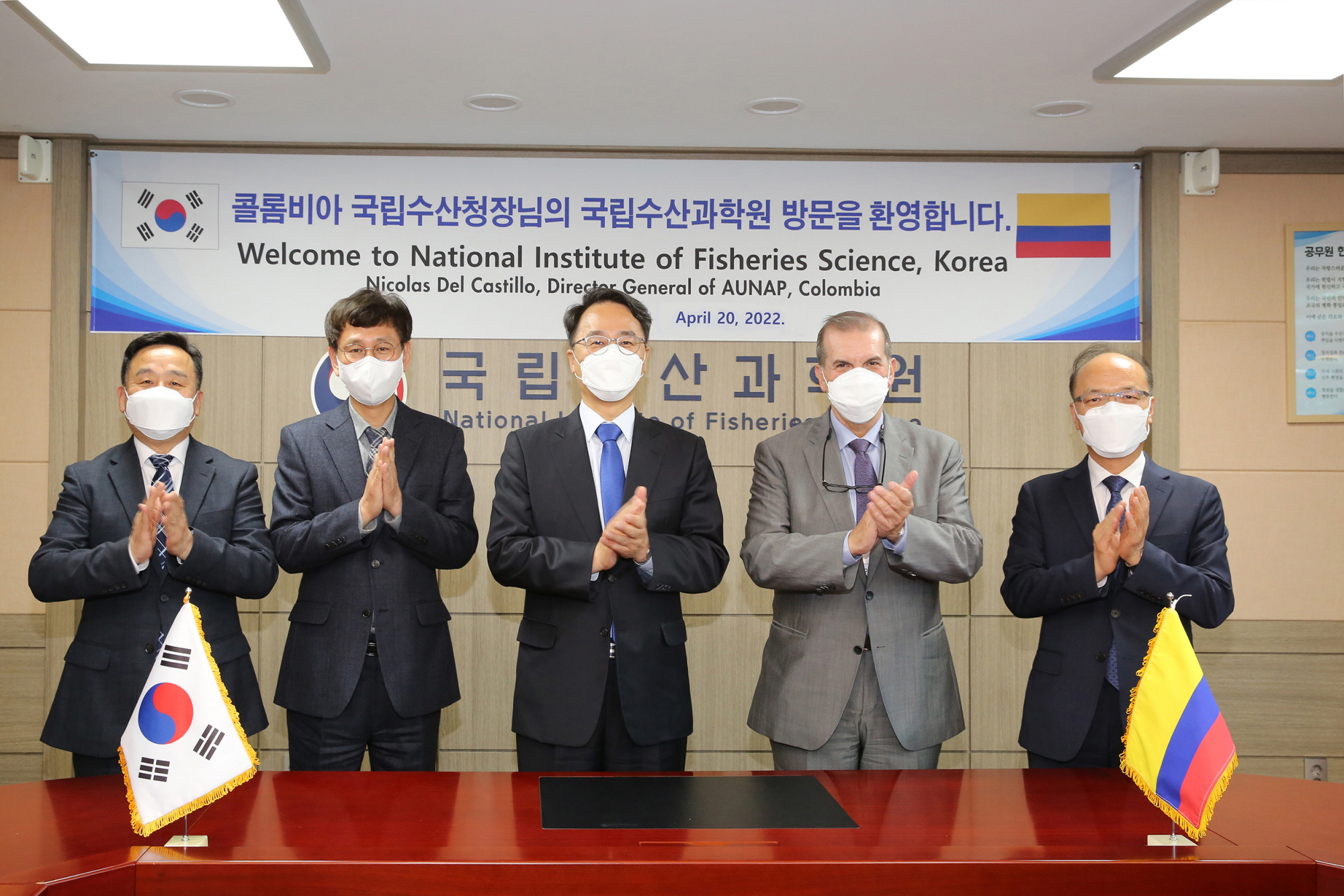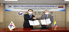The National Institute of Fisheries Science (NIFS) signed the Memorandum of Understanding (MOU) with AUNAP, the National Aquaculture and Fisheries Authority of Colombia, for research cooperation and technology development in the field of marine fisheries. The president of NIFS and the director general of AUNAP mutually agreed to build the cooperative relation for fisheries science research.