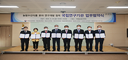 The National Institute of Fisheries Science (NIFS) signed the Memorandum of Understanding (MOU) with eight national research institutes relevant to agricultural and fishery food to repond effectively to pending issues and strengthen mutual communication.