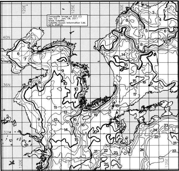 광역 위성영상 합성 표면수온 분포도 (2017. 01. 03 ~ 2017. 01. 09)
