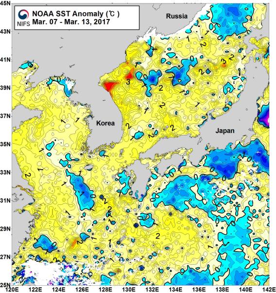 NOAA 위성영상 표면수온 평년편차 분포도 (2017. 03. 07 ~ 2017. 03. 13)