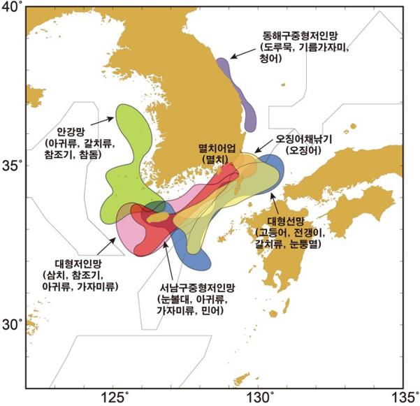 ○ 근해안강망어업 3월의 근해안강망어업은 남해 서부해역 및 제주 북서부 근해에서 갈치(28%), 아귀류(28%), 병어(14%), 반지(8%) 등을 대상으로 어장이 형성되었으며, 전체적인 어황은 평년비 순조로웠다. 4월에 들면 근해안강망어업은 서해 중부해역~제주 서부 근해에 걸쳐 어장이 형성되겠으며 아귀류, 참돔, 갈치, 참조기 등을 대상으로 조업할 것으로 전망된다. 전체적인 어황은 평년수준 또는 평년비 순조로울 것으로 예상된다. ○ 저인망어업 3월의 대형저인망어업은 쌍끌이어업이 제주 남서부~남해 중부해역에 걸쳐 갈치(32%), 삼치(27%), 전어(11%), 병어(5%) 등을 어획하였으며, 외끌이대형저인망어업은 제주 서부 근해~대마도 서부해역에 걸쳐 아귀류(19%), 가자미류(11%), 눈볼대(10%), 갑오징어(10%) 등을 대상으로 어장이 형성되었다. 서남구중형저인망어업은 제주 주변해역~대마도 북서부해역에 걸쳐 눈볼대(26%), 아귀류(18%), 가자미류(13%), 민어(6%) 등을 대상으로 어장이 형성되었고, 동해구외끌이중형저인망어업은 주로 동해중부 연안에서 도루묵(47%), 청어(28%), 기름가자미(13%), 대구류(3%)등을 어획하였다. 저인망어업의 전체적인 어황은 평년수준이었다. 4월에 들면 쌍끌이대형저인망어업은 삼치, 갈치, 병어, 참돔 등을 대상으로 제주 남서부 근해~남해 중부해역에 걸쳐 중심어장이 형성될 전망이다. 외끌이대형저인망어업은 제주도 남서부 근해부터 남해 동부해역에 걸쳐 아귀류, 참돔, 황돔, 민어, 가자미류 등을 대상으로 어장이 형성되겠다. 서남구중형저인망어업은 눈볼대, 민어, 아귀류, 가자미류 등을 대상으로 제주 남부 근해~대마도 북서쪽 근해에 걸쳐 조업이 이루어질 것으로 예상된다. 동해구외끌이중형저인망어업은 경북 및 강원연안에서 도루묵, 기름가자미, 청어, 새우류 등을 대상으로 조업이 이루어질 전망이다. ○ 오징어채낚기어업 3월의 오징어채낚기어업은 남해 동부 및 동해남부해역에서 일부어장이 형성되었고 전체적인 어황은 평년비 부진하였다. 4월에 들면 오징어채낚기어업은 한 달간의 금어기(4월 1일~4월 30일)에 들어가겠다. |