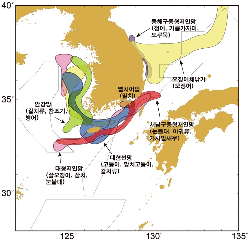 ○ 근해안강망어업 8월 근해안강망어업은 제주 북부해역~서해 남부해역에 걸쳐, 갈치(85%), 참조기(6%), 병어(3%), 살오징어(2%) 등을 대상으로 어장이 형성되었으며, 전체적인 어황은 평년비 순조로웠다. 9월에 들면 근해안강망어업은 서해 중남부해역~ 제주 북부해역에 걸쳐 중심어장이 형성되겠으며, 인천, 태안 근해에서도 일부 어장이 형성되겠다. 갈치, 참조기, 꽃게, 대하 등을 대상으로 주로 조업할 것으로 전망되며, 전체적인 어황은 척당어획량이 최근까지 높은 수준을 보이고 있어, 평년비 순조로울 것으로 예상된다. ○ 저인망어업 8월의 대형저인망어업은 쌍끌이어업이 서해남부 근해역에서 살오징어(87%), 고등어(10%), 갈치(2%)등을 어획하였다. 외끌이저인망어업은 제주남부 근해~ 남해 중부해역에 걸쳐 눈볼대(50%), 창꼴뚜기(14%), 아귀류(9.3%), 참돔(4%) 등을 대상으로 조업하였다. 서남구중형저인망어업은 남해동부 근해 및 동해남부 일부해역에서 눈볼대(69%), 창꼴뚜기(7%), 아귀류(5%), 가시발새우(4%) 등을 대상으로 어장이 형성되었고, 동해구외끌이중형저인망어업은 강원·경북 연근해에서 청어(48%), 기름가자미(21%), 도루묵(17%) 등을 어획하였다. 저인망어업의 전체적인 어황은 평년비 순조로웠다. 9월에 들면 쌍끌이대형저인망어업은 살오징어, 삼치, 고등어, 홍어 등을 대상으로 서해 중남부 근해에서 어장이 형성되겠다. 외끌이대형저인망어업은 제주 남서부 근해~ 남해 동부해역에 걸쳐 눈볼대, 아귀류, 황돔, 달고기류 등을 대상으로 어장이 형성되겠다. 서남구중형저인망어업은 눈볼대, 아귀류, 가시발새우, 가자미류 등을 대상으로 제주 남부해역과 남해동부 및 대마도 북동부 해역에서 조업이 이루어질 것으로 예상된다. 동해구외끌이중형저인망어업은 동해 연안을 중심으로 청어, 기름가자미, 대구 등을 대상으로 조업하겠다. 저인망어업의 전체적인 어황은 평년비 순조로울 것으로 전망된다. ○ 오징어채낚기어업 8월의 오징어채낚기어업은 서해 중남부 근해에서 주로 조업하였고, 전체적인 어황은 평년비 부진하였다. 9월에 들면 오징어채낚기어업은 동해어장이 본격적으로 형성되는 시기(주어기)를 맞아, 강원·경북 연근해 및 동해 중남부 근해(대화퇴어장)에서 활발한 조업이 이루어질 것으로 예상된다. 전체적인 어황은 평년비 부진이 이어질 것으로 전망되나, 연근해 고수온의 지속여부 및 지역적인 범위에 따라 변동성이 클 것으로 전망된다.