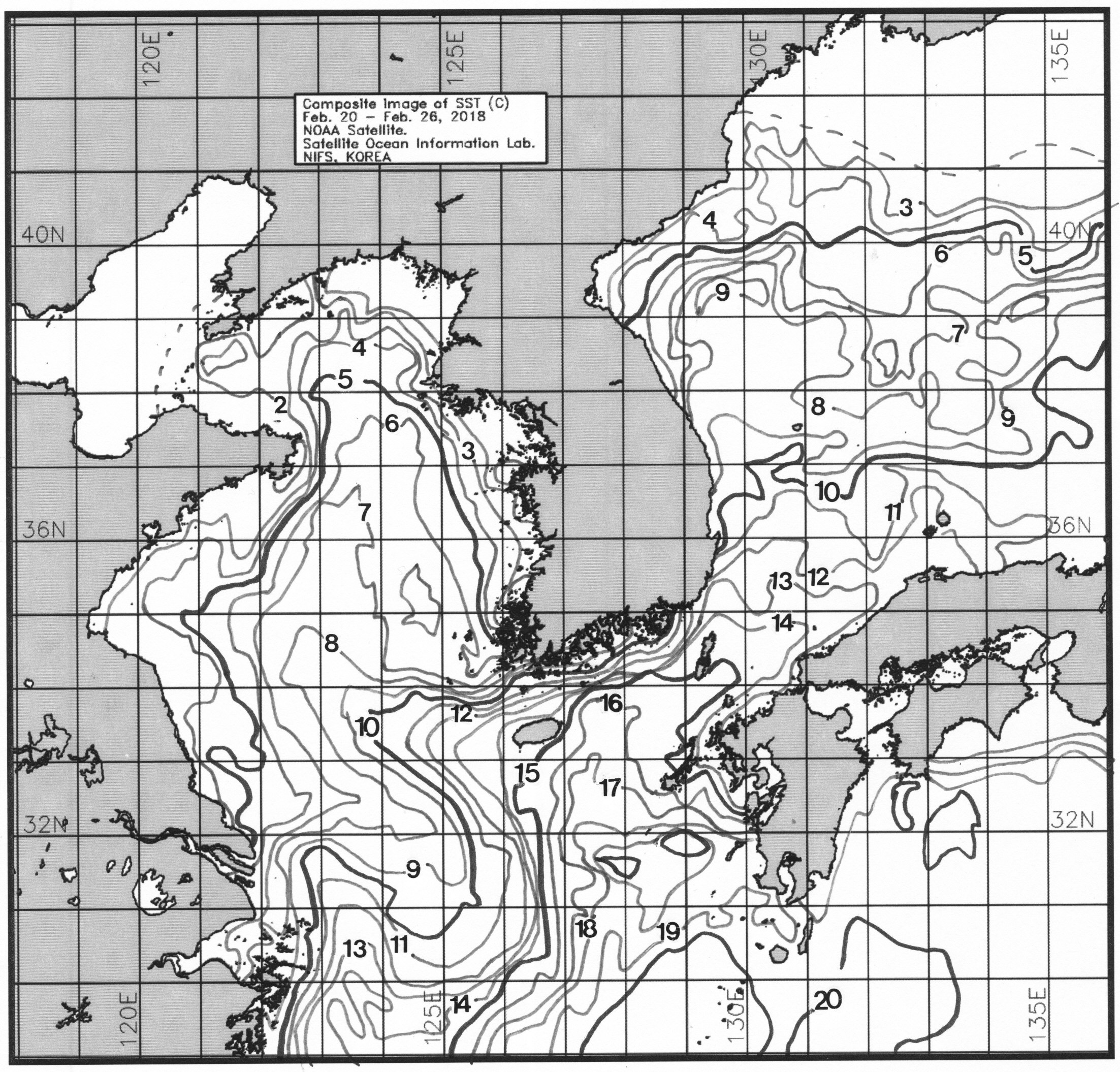 광역 위성영상 합성 표면수온 분포도 (2018. 02. 20 ~ 2018. 02. 26)