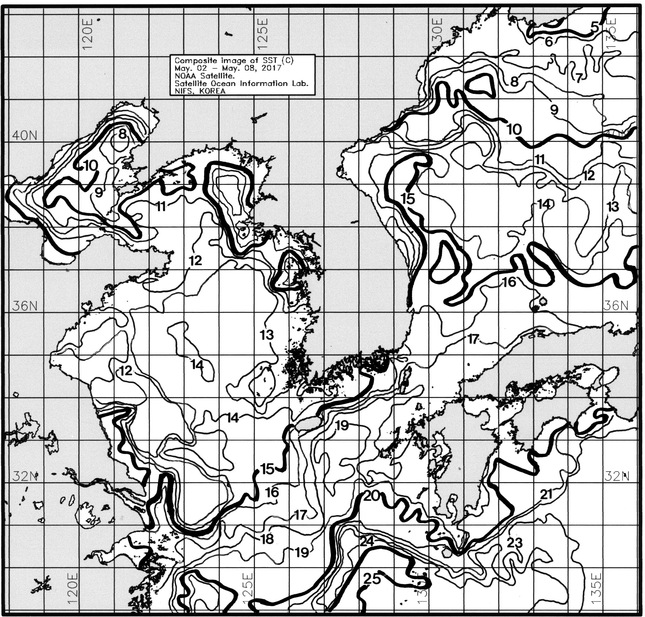광역 위성영상 합성 표면수온 분포도 (2017. 05. 02 ~ 2017. 05. 08)