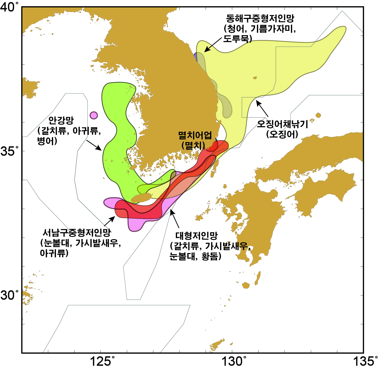 ○ 대형선망어업 5월(월보기간: 4.15~05.19)의 대형선망어업은 제주 북서부해역과 제주 동부 근해~ 대마도 서부해역에 걸쳐, 고등어(60%), 갈치(16%), 전갱이(11%), 망치고등어(3%)를 대상으로 조업하였고, 전체적인 어황은 평년수준이었다. 6월에도 대형선망어업은 2개월(4.29~7.1)간의 휴어기가 이어지겠다.
