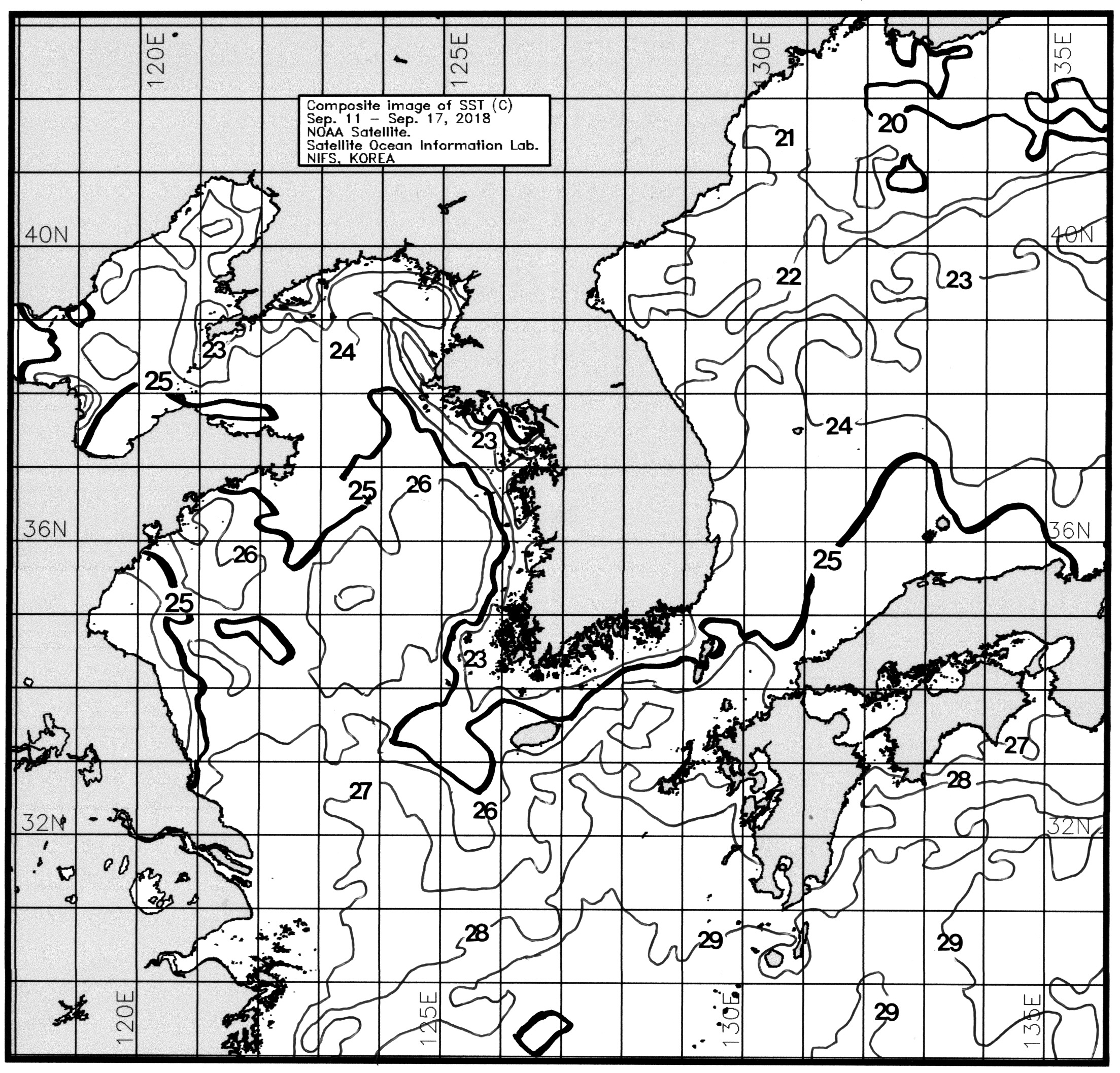 광역 위성영상 합성 표면수온 분포도 (2018. 09. 11 ~ 2018. 09. 17)
