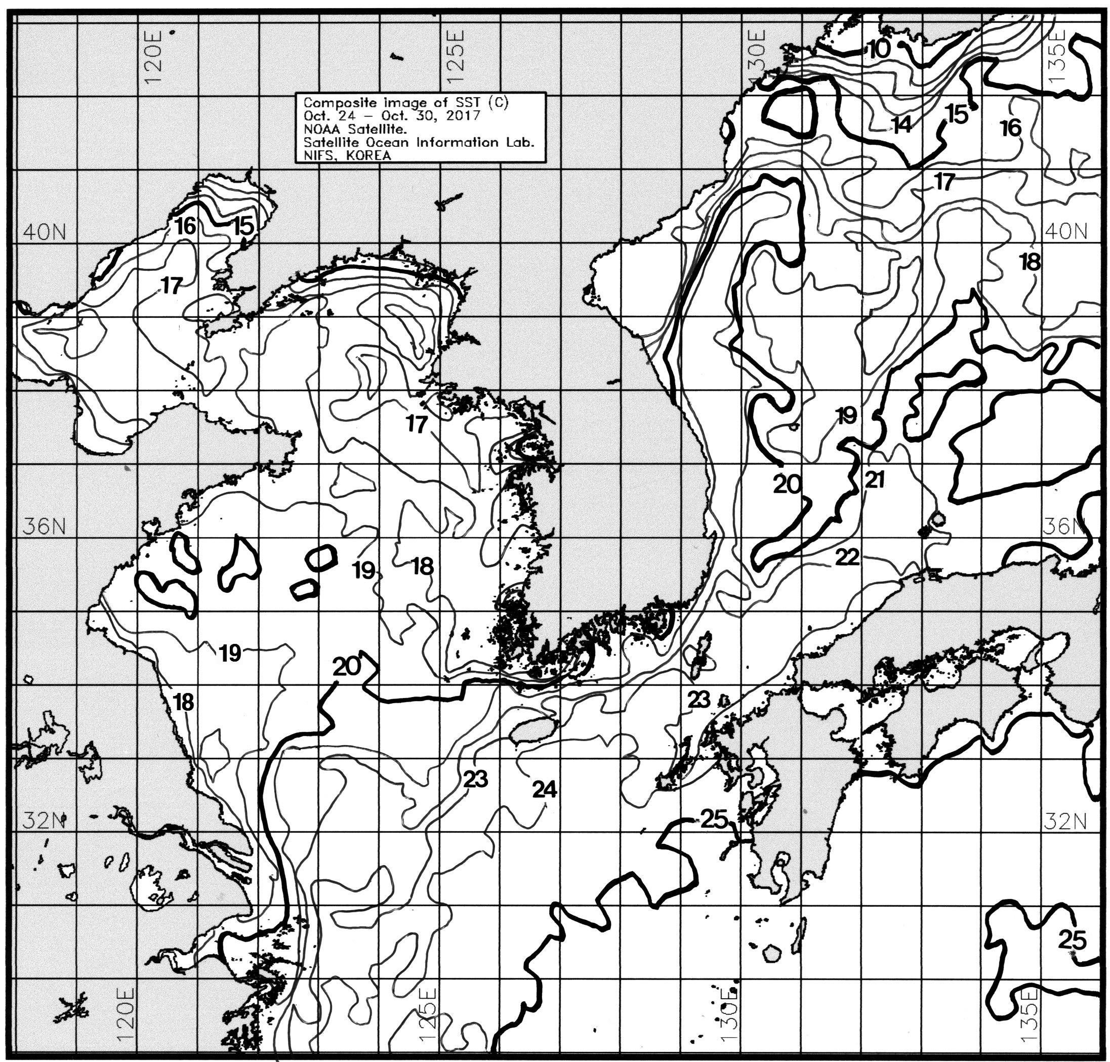 광역 위성영상 합성 표면수온 분포도 (2017. 10. 24 ~ 2017. 10. 30)