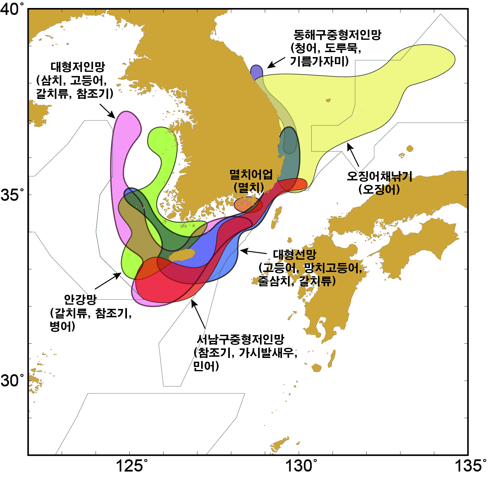 1. 어종별 어황 10월(월보기간: 9.16~10.13)의 주요 어종별 어황을 살펴보면 전갱이, 고등어는 평년비 순조로웠고, 참조기, 갈치, 멸치는 평년수준, 살오징어는 평년비 부진하였다. 11월에 들면 고등어는 계절적인 수온 하강과 함께 남하회유가 활발하여, 서해 남부해역에서 북부동중국해로 어군이 이동하면서 제주 주변해역을 중심으로 어장이 형성되겠다. 단위노력당어획량이 전반적으로 높은 수준을 유지하고 있어, 어군밀도가 높은 상태로 판단되며, 전체적인 어황은 평년비 순조로운 어황이 이어질 것으로 전망된다. 전갱이 또한 계절적인 남하회유에 따라 제주주변해역을 중심으로 어장이 형성되겠고, 남해 동부 및 서해 남부해역에서도 일부 어장이 형성될 것으로 전망된다. 전체적인 어황은 평년비 순조 또는 평년수준을 나타낼 것으로 전망된다. 살오징어는 산란시기를 맞아 동해 남부 및 북부동중국해로 남하하는 어군을 대상으로 동해 중남부 연·근해(강원, 경북)에서 중심어장이 형성되겠다. 동해에서 주어기를 맞아 조업활동이 활발하겠고, 공조조업 등 불법조업에 대한 단속활동이 강화되겠다. 전체적인 어황은 어군밀도 감소와 내유자원의 감소로 평년대비 부진이 이어질 전망이다. 멸치는 외해로 남하하는 어군을 대상으로 남해 중부해역(남해도와 거제도 주변)을 중심으로 권현망어업이 조업을 이어나가겠고, 울산~기장 근해에서 유자망어업에 의한 가을 어기가 시작되겠다. 전체적인 어황은 평년수준 또는 평년비 부진 할 것으로 전망된다. 갈치는 제주 남부 먼 바다~서해 남부해역에 걸쳐 어장이 형성되겠고, 남해 중부 해역에서도 일부어장이 형성되겠다. 남하하는 어군이 지속적으로 어장에 가입하면서 주어기(8-11월)가 이어지겠고, 전체적인 어황은 평년수준을 유지할 것으로 전망된다. 참조기는 서해 남부~제주 북서부 근해에 걸쳐 중심어장이 형성되겠고, 주어기(10-11월)가 지속되면서 근해유자망, 근해안강망어업 등 주 업종에서 조업활동이 활발하겠다. 최근 주업종인 근해유자망에서의 단위노력당어획량은 평년대비 높은 수준을 보이고 있으며, 전체적인 어황은 평년비 순조로울 것으로 전망된다. 그 외, 망치고등어는 평년비 순조로운 어황이 이어질 것으로 전망되며, 말쥐치는 연·근해에서의 낮은 어군밀도가 지속되면서 부진한 어황을 보일 전망이다. 2. 업종별 어황 ○ 2018년 11월 어업별 예상어장도 ○ 대형선망어업 10월의 대형선망어업은 제주 주변해역에서 중심어장이 형성되었고, 서해 남부 근해에서도 일부 어장이 형성되면서, 고등어(56%), 망치고등어(38%), 전갱이(3%), 갈치(1%) 등을 대상으로 조업하였다. 11월에 들면 대형선망어업은 고등어, 망치고등어, 줄삼치, 갈치, 방어, 전갱이 등을 대상으로 제주 주변해역~남해 중부해역을 중심으로 조업하겠다. 전체적인 어황은 평년비 순조로울 것으로 전망된다. ○ 멸치권현망어업 10월의 권현망어업은 남해도와 거제도 주변해역에서 조업하였고, 전체적인 어황은 평년수준이었다. 11월에 들면 권현망어업은 남해도와 거제도 주변해역에서 조업을 이어가겠고, 전체적인 어황은 평년수준 또는 평년비 부진한 어황을 보일 것으로 전망된다.