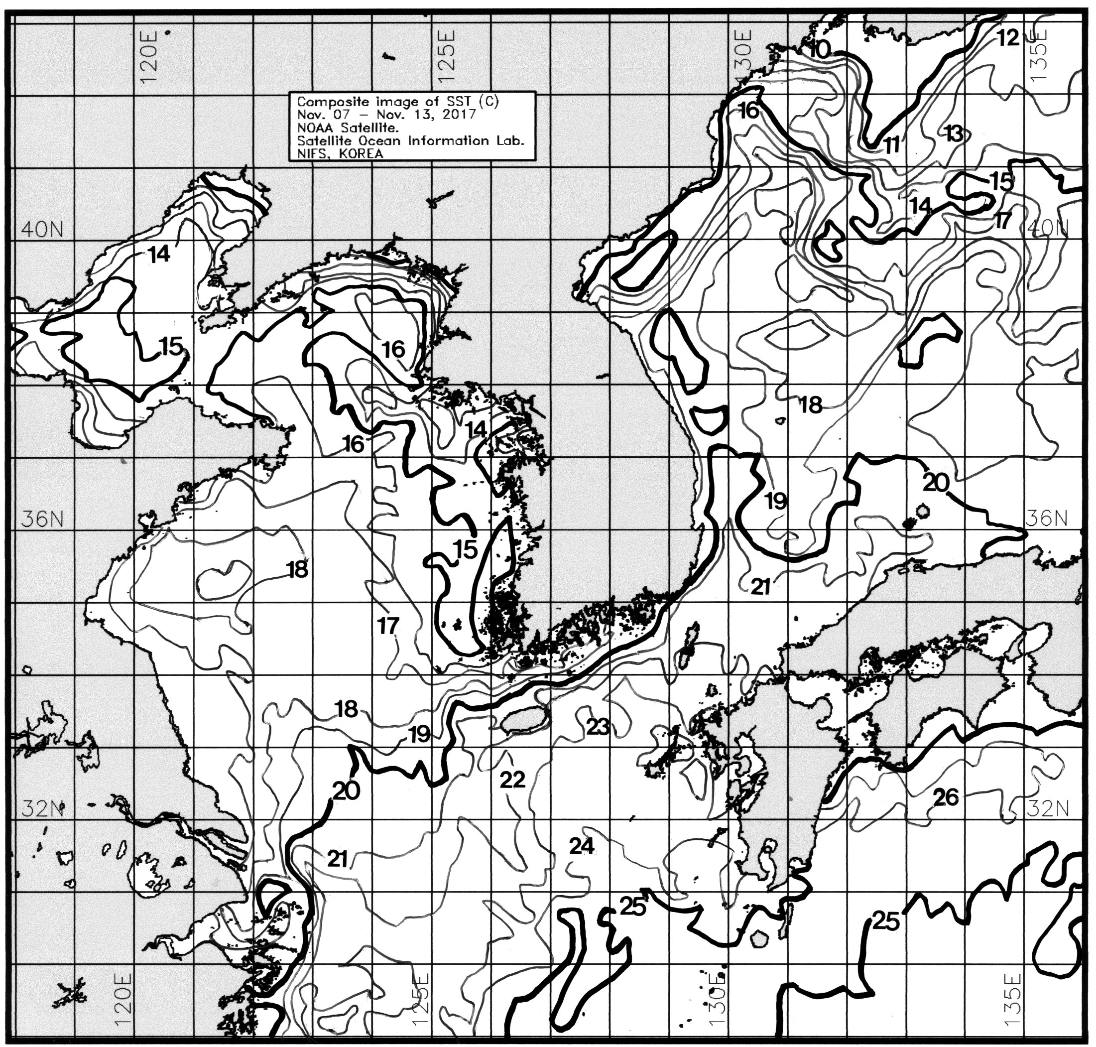 광역 위성영상 합성 표면수온 분포도 (2017. 11. 07 ~ 2017. 11. 13)