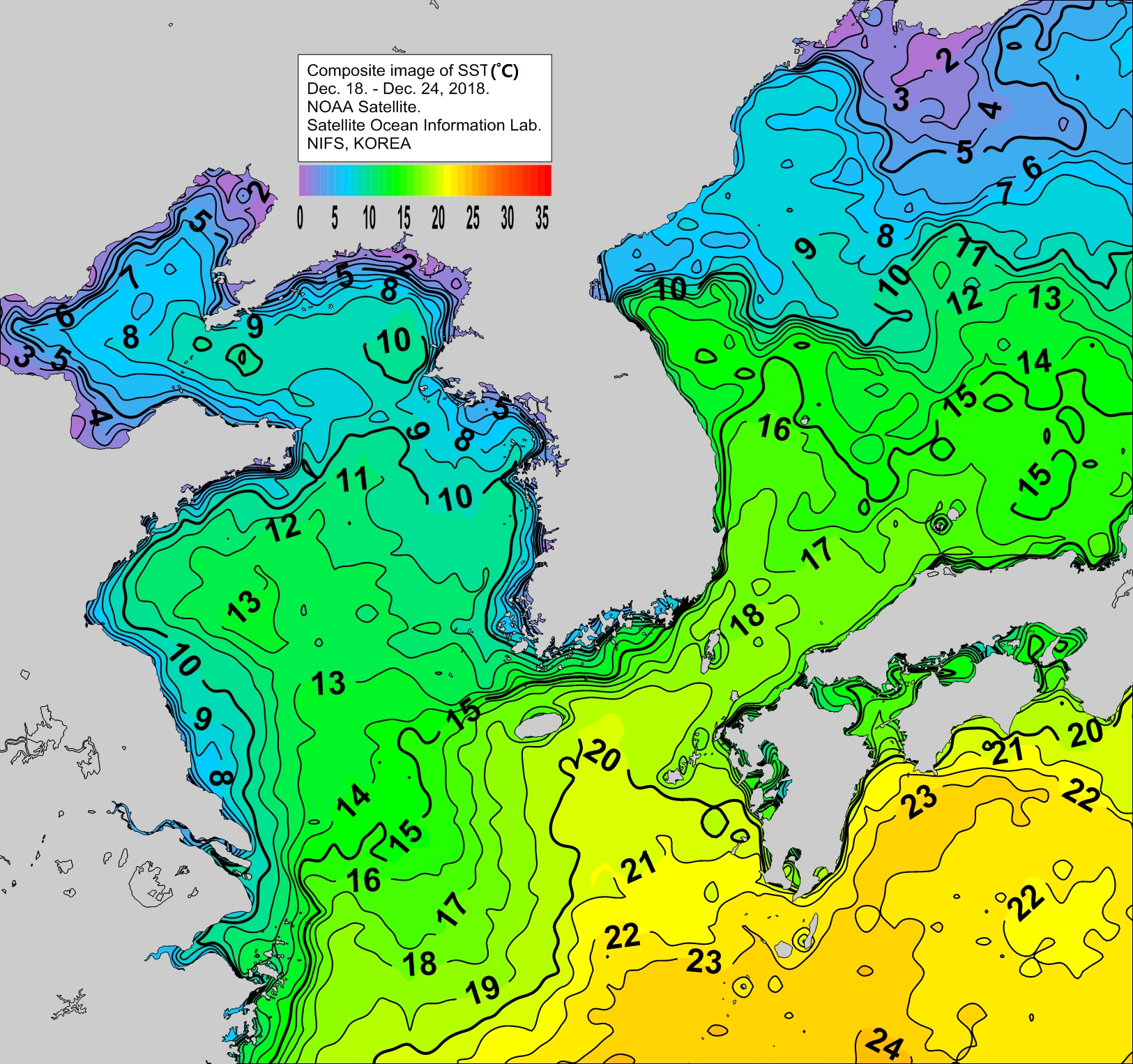 광역 위성영상 합성 표면수온 분포도 (2018. 12. 18 ~ 2018. 12. 24)